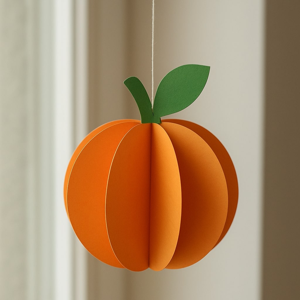 Piega ciascun cerchio a metà e incollali tra loro fino a formare una zucca 3D.